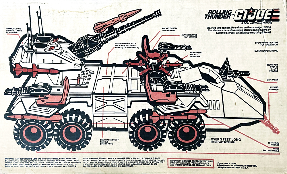 ARMADILLO está no comando do veículo de assalto mais fortemente armado do mundo – o Rolling Thunder! Ele é o piloto mais confiável em toda a oficina do G.I. Joe! Armadillo é versado em todas as tecnologias de assalto terrestre mais recentes e sua experiência como motorista é incomparável! Quando chegou a hora de selecionar um piloto para este formidável veículo de ataque, Armadillo serviu como uma luva para o trabalho!