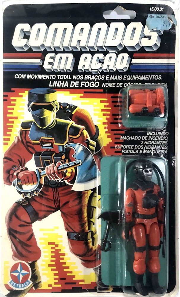 Em 1989, o layout padrão das cartelas dos bonecos do Comandos em Ação mudou, ficando mais parecido com o americano. Como esteve disponível nas lojas em 1988 e 1989, o Fogueira teve as duas versões da embalagem.