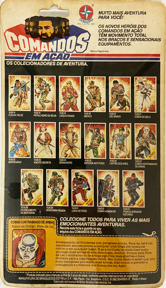 Em 1989, o layout padrão das cartelas dos bonecos do Comandos em Ação mudou, ficando mais parecido com o americano. Como esteve disponível nas lojas em 1988 e 1989, o Fora-da-Lei teve as duas versões da embalagem.