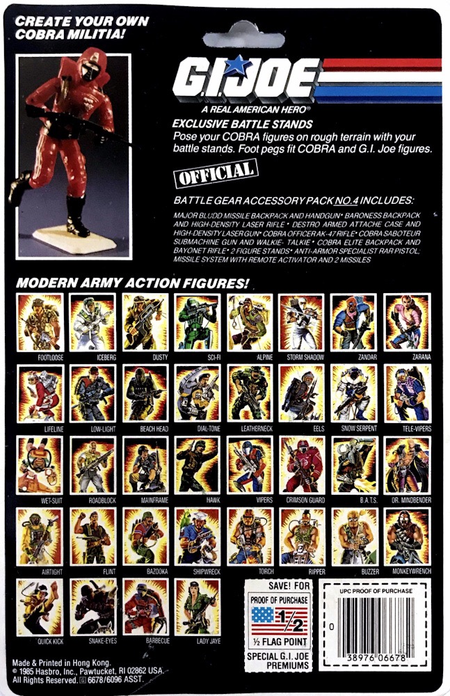 - 1 mochila de mísseis vermelha (Major Bludd)