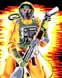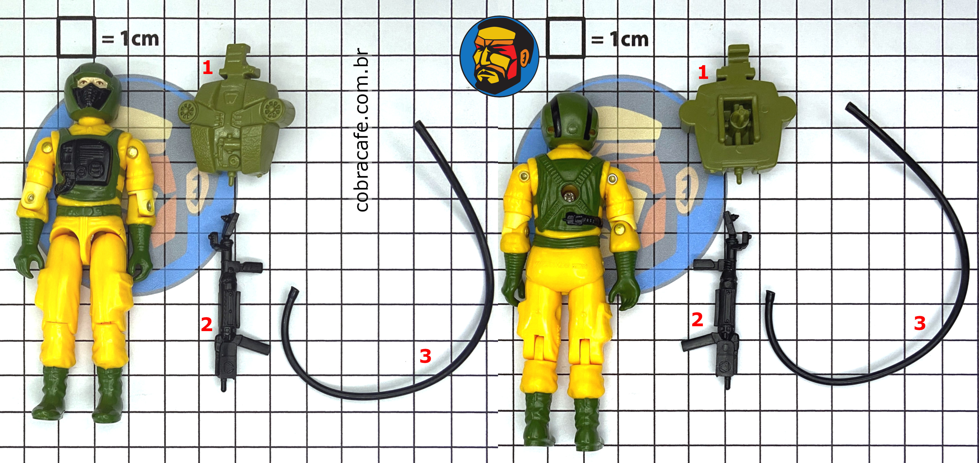 “Airtight é um desses brincalhões inveterados; pó de espirro, vômito de plástico, almofada de pum – a coisa toda!! Nenhuma brincadeira é baixa demais para ele. Você poderia pensar que os outros Joes iriam odiá-lo, mas não. Porque quando os bandidos endurecem a batalha e começam a jogar sujo, é o Airtight que põe o traje e mete as caras.”