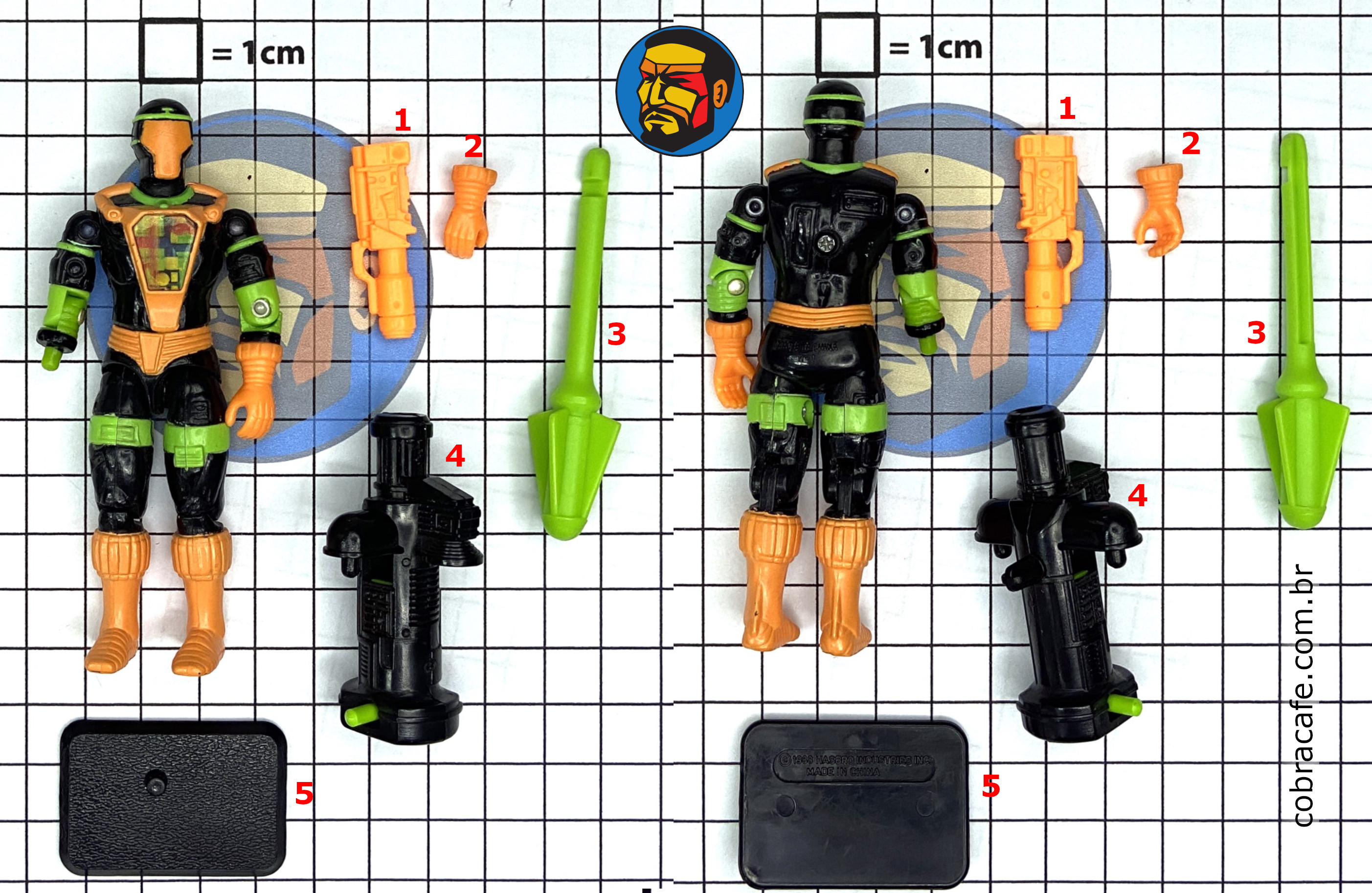 - 1 encaixe laranja para o braço em forma de arma