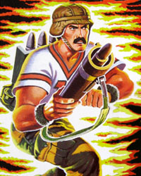 BAZOOKA esteve no mundo todo dirigindo um tanque Abrams com a “Terceira Horda” (Terceira Divisão Blindada) contra as forças do Cobra. Longas viagens deixaram Bazooka com saudades de casa e ansiando por seu hobby favorito: a pesca. Sempre que ele tem que lutar, a lembrança de casa o deixa furioso para a batalha… e isso não é história de pescador porque, quando ele está zangado, é um cara que você DEFINITIVAMENTE quer do seu lado quando a ação esquentar! Bazooka treinou na Escola de Infantaria Avançada em Fort Benning e na Academia de Pescaria do Homem Selvagem em Minnesota.