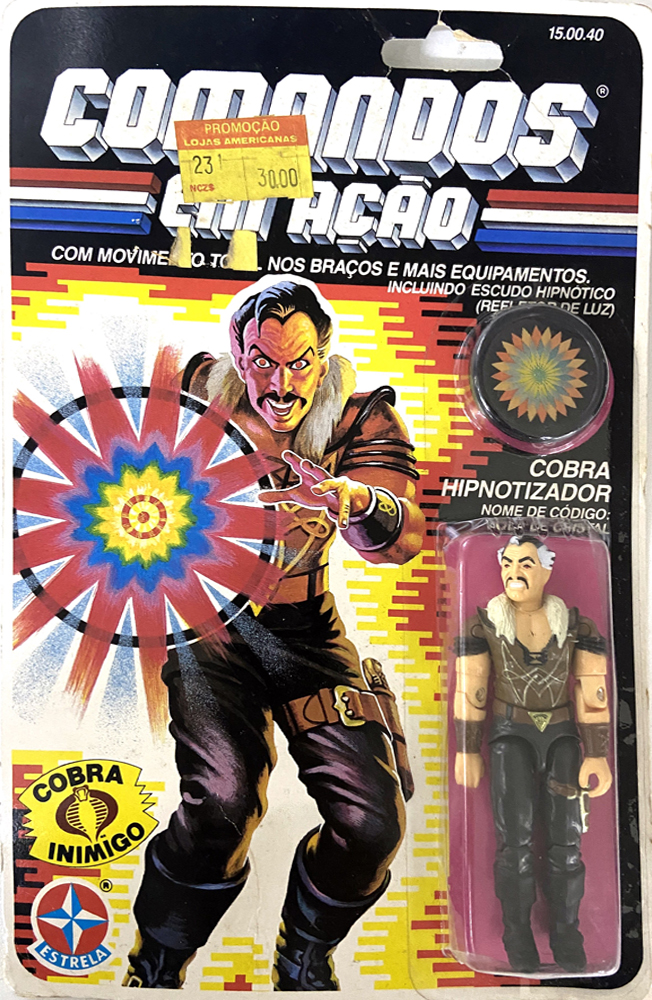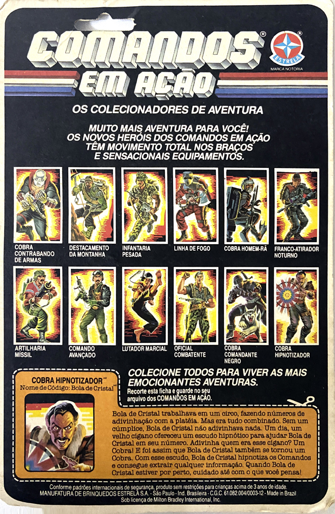 Bola de Cristal trabalhava em um circo, fazendo números de adivinhação com a plateia. Mas era tudo combinado. Sem um cúmplice, Bola de Cristal não adivinhava nada. Um dia, um velho cigano ofereceu um escudo hipnótico para ajudar Bola de Cristal em seu número. Adivinha quem era esse cigano? Um Cobra! E foi assim que Bola de Cristal também se tornou um Cobra. Com esse escudo, Bola de Cristal hipnotiza os Comandos e consegue qualquer informação. Quando Bola de Cristal estiver por perto, cuidado até com o que você pensa!