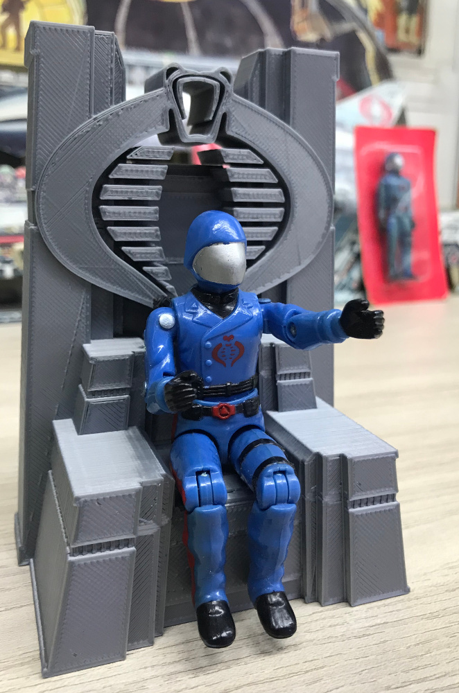 Informações Adicionais: O Cobra Commander, ou Comandante Cobra, como acabou ficando conhecido no Brasil, foi lançado nos EUA por meio de compra por correio. Ele também poderia ser adquirido junto com o Cobra Missile Command Headquarters.