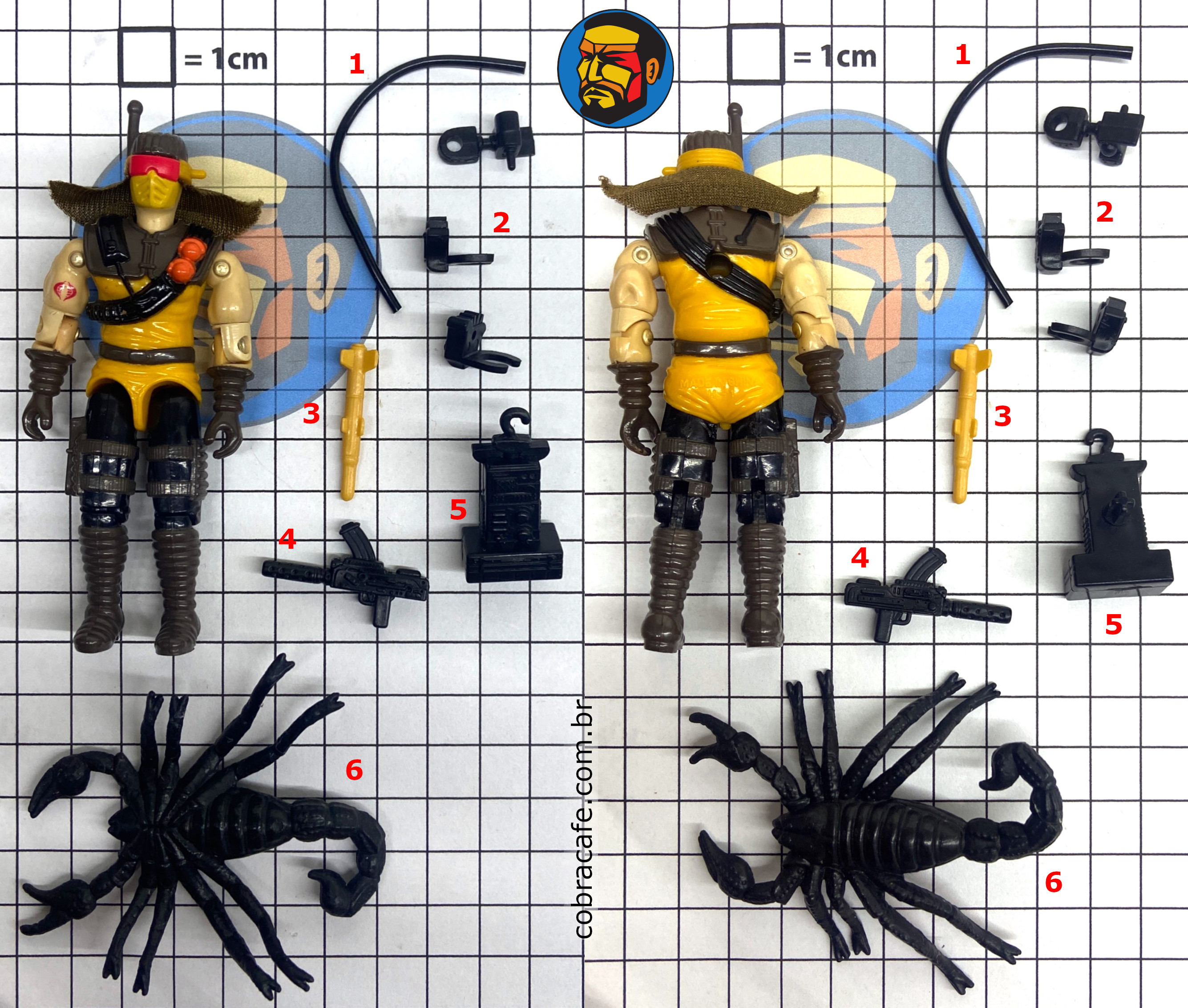 Há duas versões da cabeça do Desert Scorpion; uma com a cabeça de plástico rígido e a outra com capacete de borracha vinílica, de modo que o pino da mangueira pode ser dobrado.