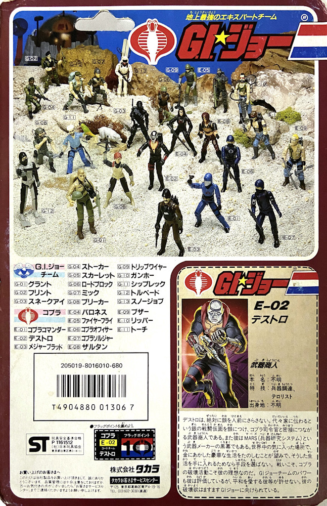 Destro jamais mostra seu rosto em público. Diz a tradição de sua linhagem que ele deve sempre usar uma máscara de batalha prateada. Ele é um mercador de armas influente, com conexões diretas com o Comandante Cobra, e atua nos bastidores da MARS (Sistemas de Pesquisa de Armamentos), uma das maiores fabricantes de armas do mundo. Seu desejo é viver cercado de luxo em qualquer lugar do planeta onde sua riqueza possa ser ostentada. Para manter esse estilo de vida, Destro é capaz de tudo, inclusive provocar guerras. Para ele, destruição é ideal. Embora admire a força da equipe G.I. Joe, não pode tolerar seu amor pela paz. Por isso, sua sede por destruição está sempre voltada contra eles.