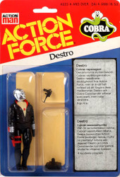 Informações Adicionais: Destro apareceu pela primeira vez como um misterioso associado do Comandante Cobra, mas seu nome não é mencionado e seu rosto não aparece.