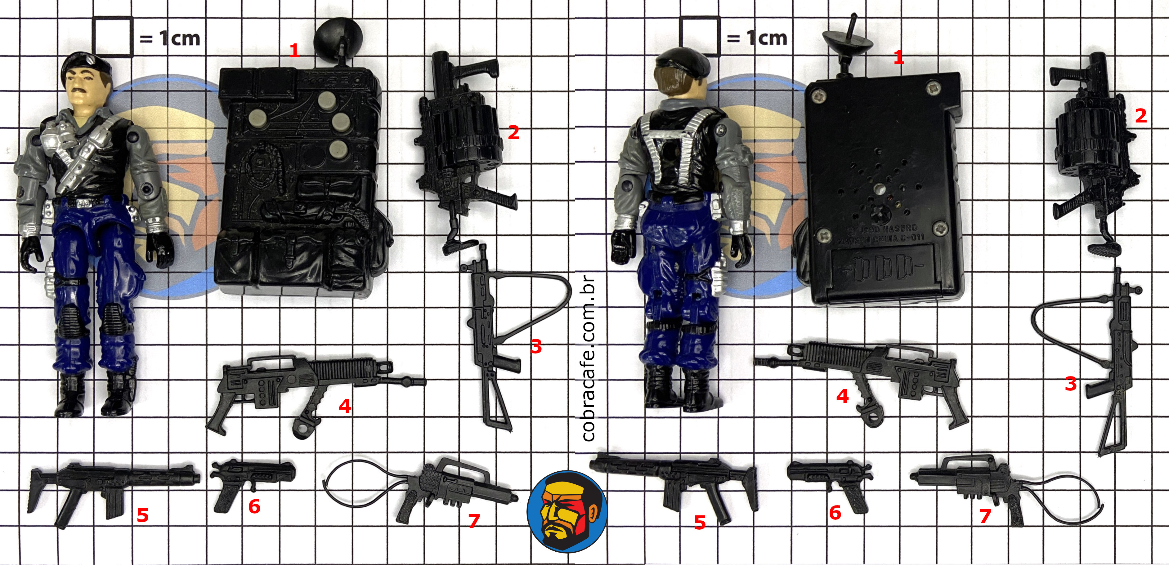 - 1 mochila preta com quatro botões, que emitiam um tipo de som de disparo cada