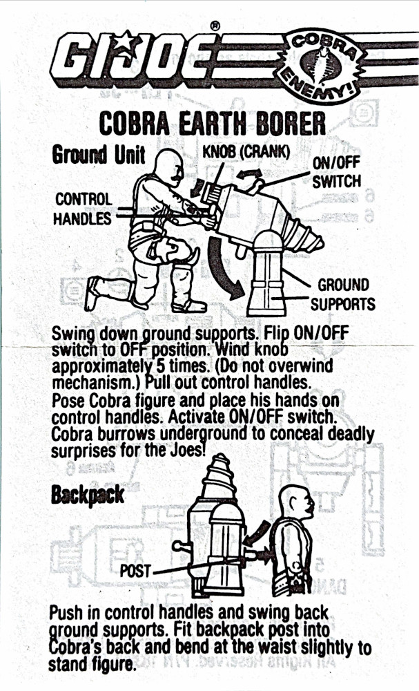 Marca: Hasbro Lançamento: Série 6 (1987) Filiação: Cobra Significado do Nome ou Codinome: Broca-de-Terra