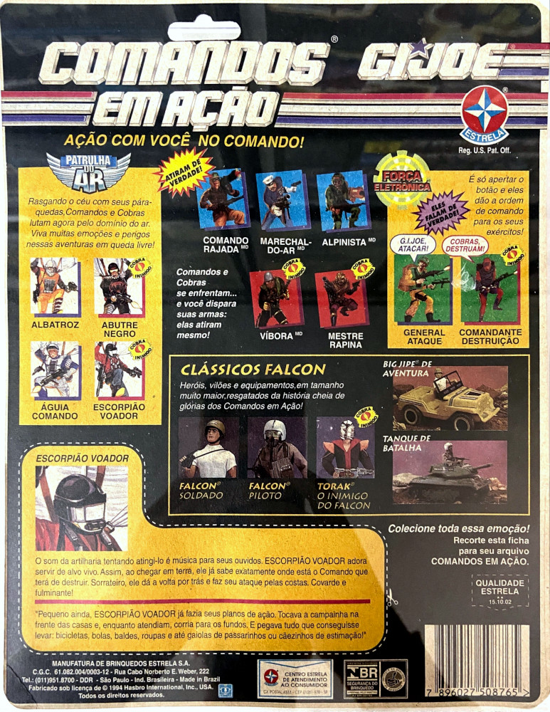 Informações Adicionais: O Escorpião Voador foi criado e comercializado com exclusividade pela Estrela, a partir de peças que formavam outros bonecos, com cores adequadas especialmente para ele.