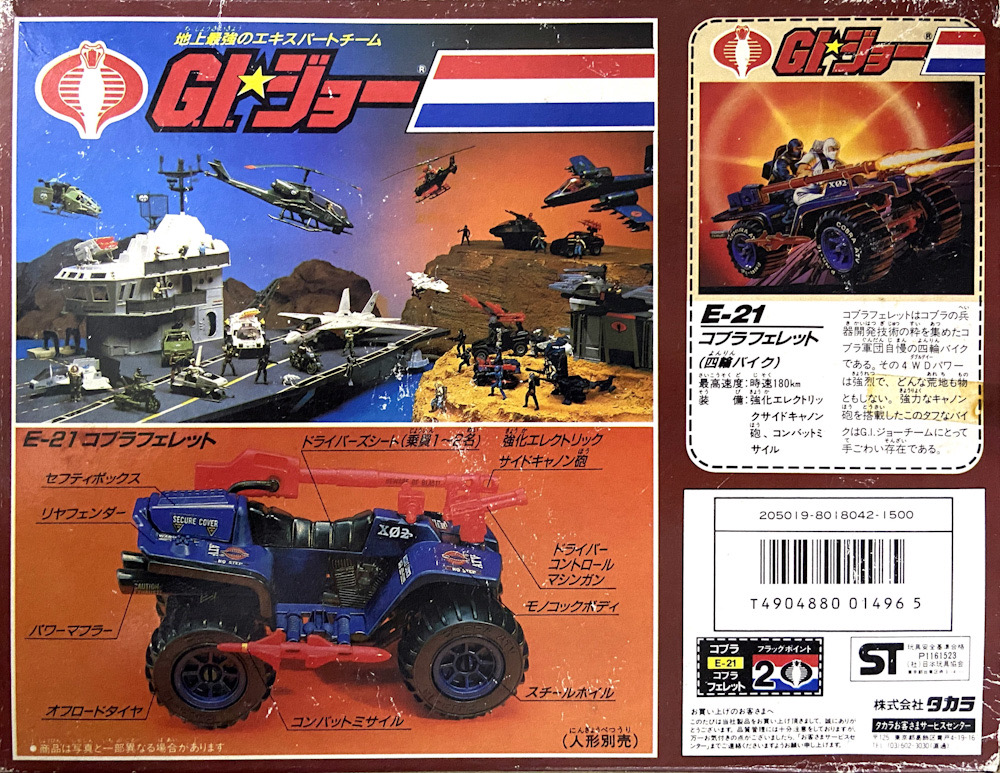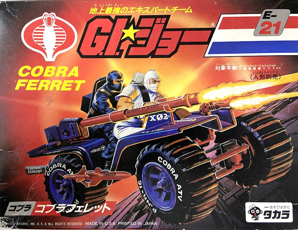 A Cobra Ferret é o quadriciclo de que a força Cobra mais se orgulha, reunindo o que há de mais avançado em tecnologia de desenvolvimento de armamentos da organização. Seu sistema de tração nas quatro rodas (4WD) é tão potente que atravessa qualquer tipo de terreno sem dificuldade. Equipada com canhões e mísseis de combate, essa moto de guerra representa uma grande ameaça para a equipe G.I. Joe.