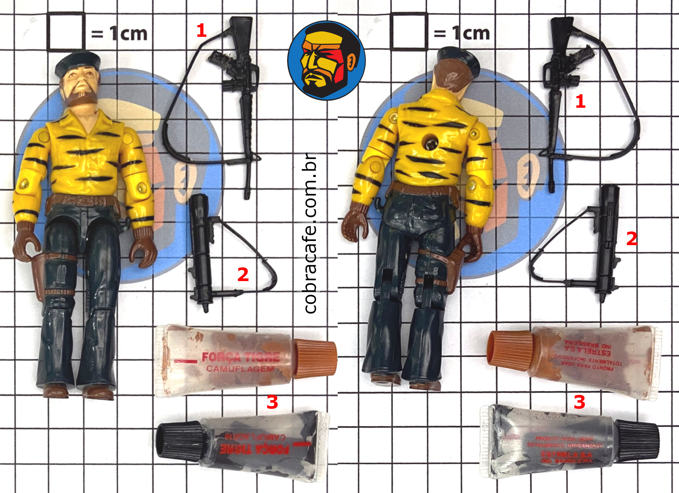 Venda em Conjunto com: Trata-se de uma figura exclusiva do Brasil que aproveitou quase todas as peças dos moldes de Shipwreck V1 (exceto os braços), mas que usava o tema de cores da Força Tigre.