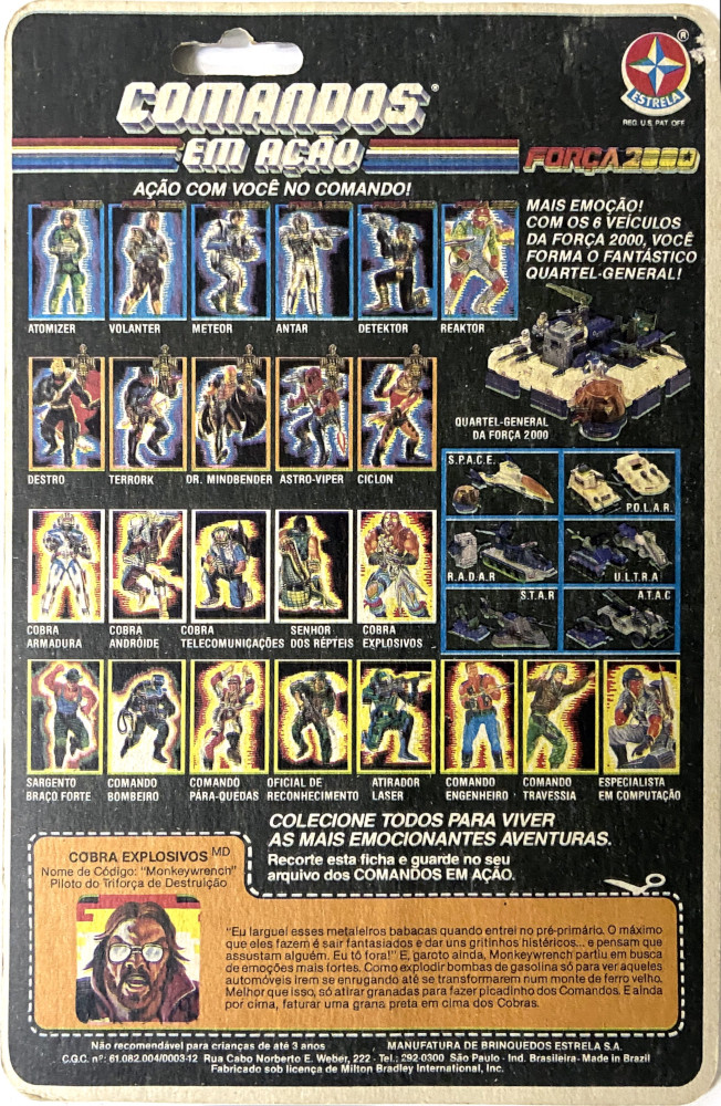 “Eu larguel esses metalelros babacas quando entrei no pré-primário. O máximo que eles fazem é sair fantasiados e dar uns gritinhos histéricos… e pensam que assustam alguém. Eu tô fora!” E, garoto ainda, Monkeywrench partiu em busca de emoções mais fortes. Como explodir bombas de gasolina so para ver aqueles automóveis irem se enrugando até se transformarem num monte de ferro velho. Melhor que isso, só atirar granadas para fazer picadinho dos Comandos. E ainda por cima, faturar uma grana preta em cima dos Cobras.