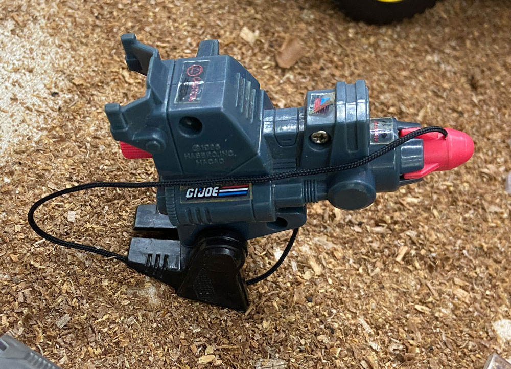 Informações Adicionais: O G.I. Joe Mortar Launcher era parte do Action Pack (Pacote de Ação), que eram armas ou dispositivos relativamente pequenos, comercializados em cartelas semelhantes às dos bonecos.