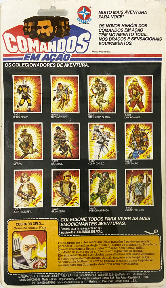 Informações Adicionais: Um fato curioso é que, apesar de sua ficha por aqui fazer uma breve menção a artes marciais, a proficiência em ninjitsu não é mencionada. Um palpite meu para explicar isso é que, nos anos 80, a relação do seu uniforme com a arte marcial japonesa não era tão automática porque ela ainda não estava tão presente na cultura pop e o pessoal da fábrica brasileira nem se deu conta, mas essa informação não foi confirmada. Difícil é, no Brasil, entender essa relação com geleiras e a Antártida…