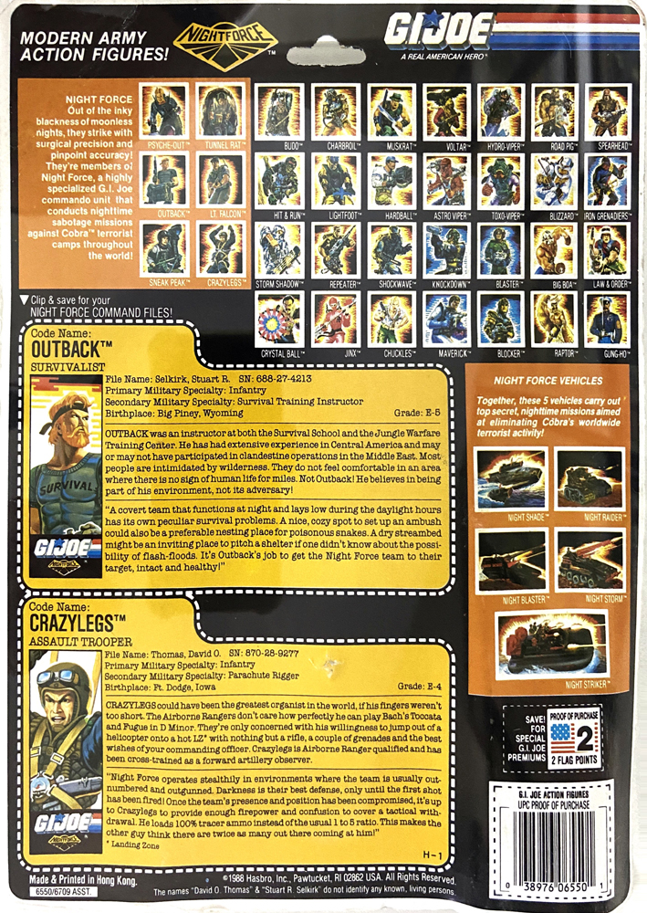 “Uma equipe secreta que funciona à noite e se esconde durante as horas de luz do dia tem seus próprios problemas de sobrevivência particulares. Um bom e confortável lugar para armar uma emboscada também pode ser um lugar de preferência para cobras venenosas fazerem seus ninhos. Um leito de riacho seco pode ser um lugar convidativo para estabelecer um abrigo se ninguém conhecer a possibilidade de trombas d’água. É a responsabilidade do Outback levar a equipe Night Force até o seu alvo, intacta e com saúde!”