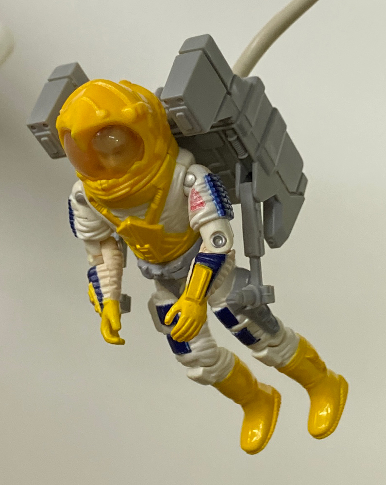 - 1 mochila cinza de astronauta com braços de controle removíveis