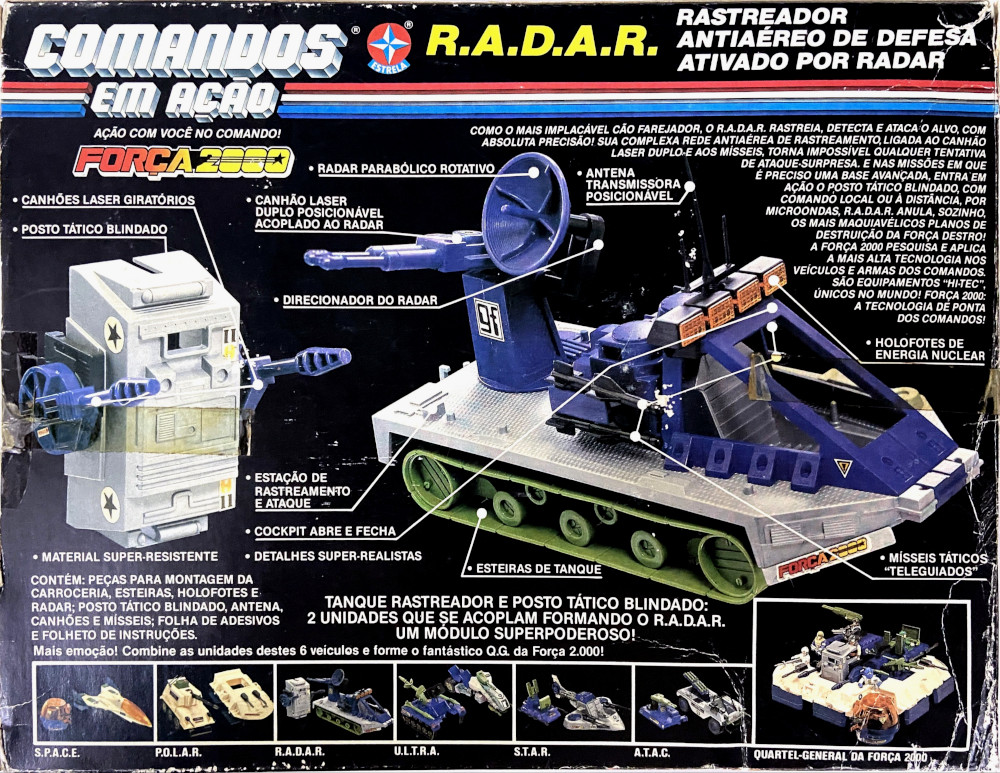 Informações Adicionais: Uma peça que vinha com o RADAR, ao se juntar a outras provenientes dos outros veículos da equipe, podia ser usada para montar o Quartel-General da Força 2000 (como foi batizada a Future Fortress pela Estrela).