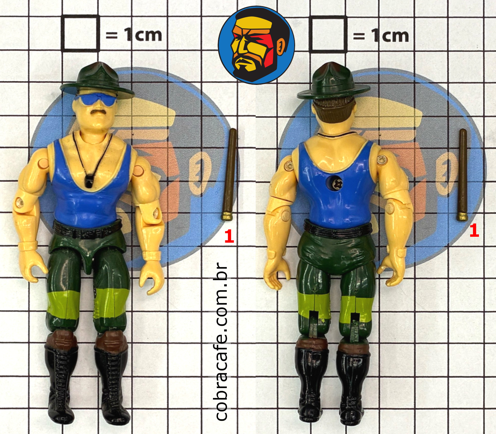 “Quando o Sgt. Slaughter grita ‘pula!’, os homens dizem ‘que altura’? Ele comanda os soldados mais durões e disciplinados no G.I. Joe. O homem é um mestre em fazer as tropas fazerem o que tem que ser feito! Dá pra ver no seu índice de sucesso: ele nunca perdeu um confronto! Isso significa alguma coisa, especialmente quando ele está constantemente caçando a mais diabólica máquina de combate do mundo… O Cobra!”
