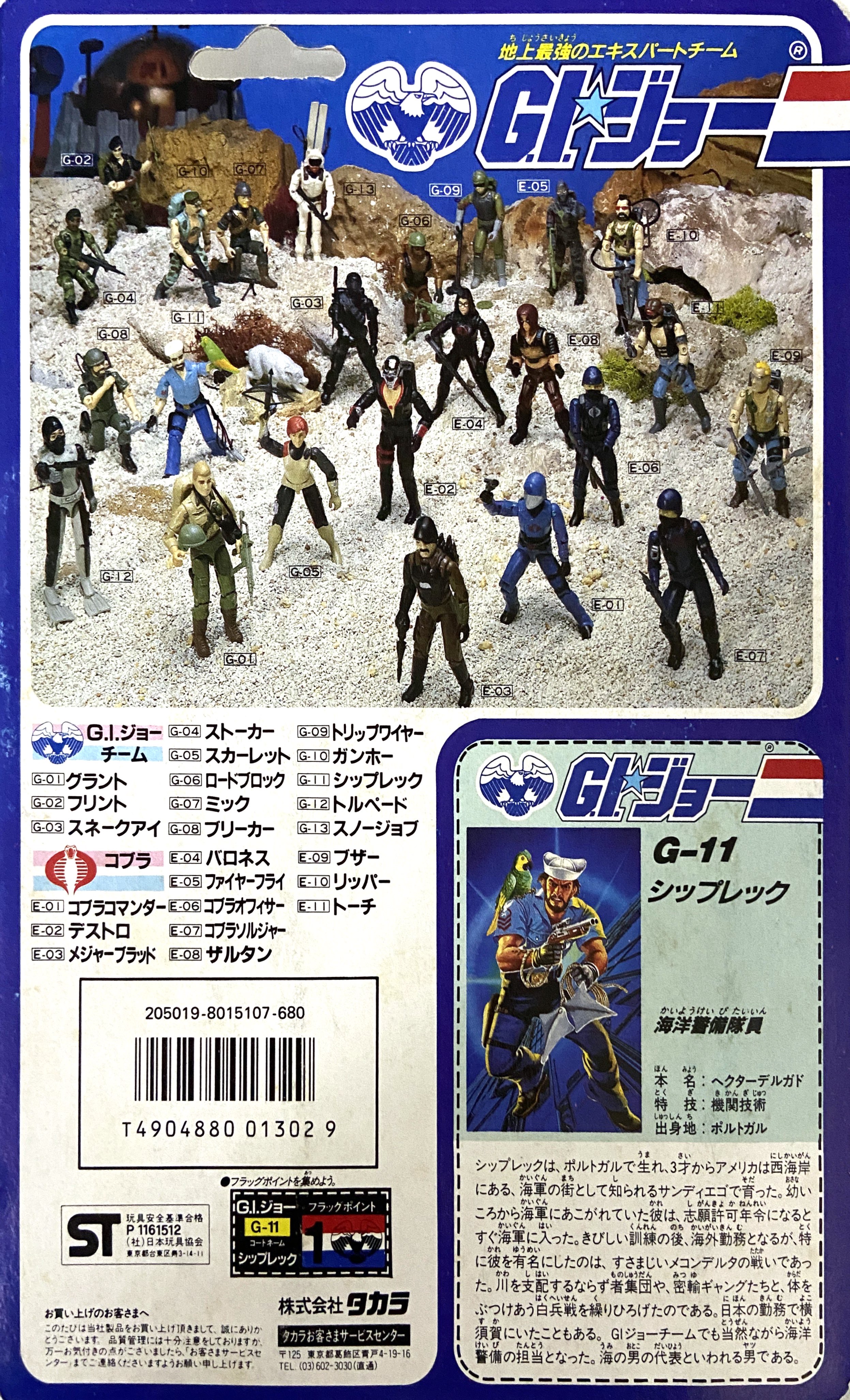 Shipwreck nasceu em Portugal, mas aos 3 anos se mudou para San Diego, nos Estados Unidos, uma cidade costeira famosa por sua ligação com a Marinha. Desde pequeno, ele sonhava em servir no mar. Alistou-se jovem e, após um rigoroso treinamento, logo começou missões no exterior, com desempenho notável. Ele se destacou especialmente durante operações de combate contra cartéis de drogas e gangues de contrabando, travando intensas batalhas corpo a corpo em zonas de conflito — inclusive durante missões no Japão. Com tanta experiência, foi natural que se tornasse o representante naval do time G.I. Joe, cuidando de missões e patrulhas marítimas. É considerado o exemplo máximo de um homem do mar.