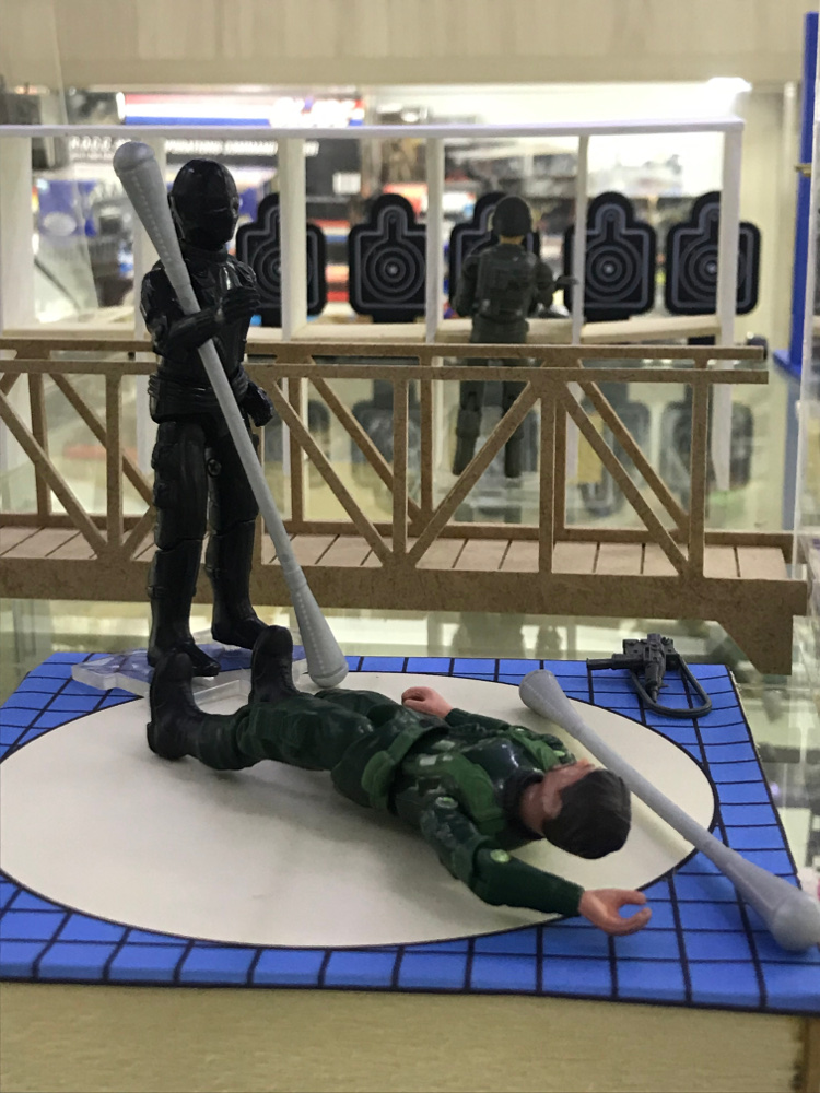 Enquanto o mestre tenta ensinar a ele como camuflar seus sons, respiração e batimentos cardíacos característicos para se proteger da habilidade de Storm Shadow de ser capaz de atingir um alvo mesmo que ele esteja do outro lado de uma parede, ele é alvo de uma flechada que atravessa uma parede. Estranho.