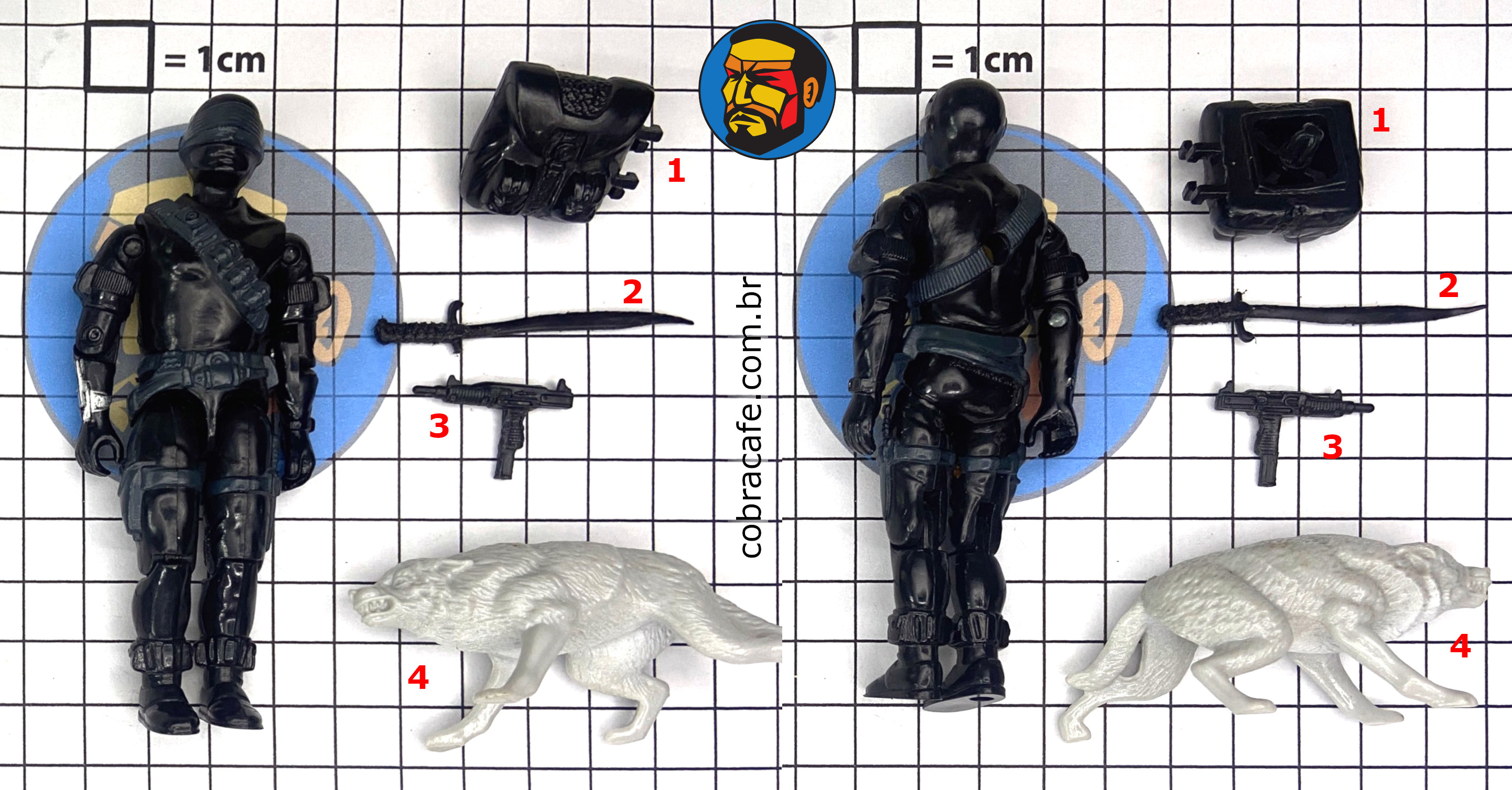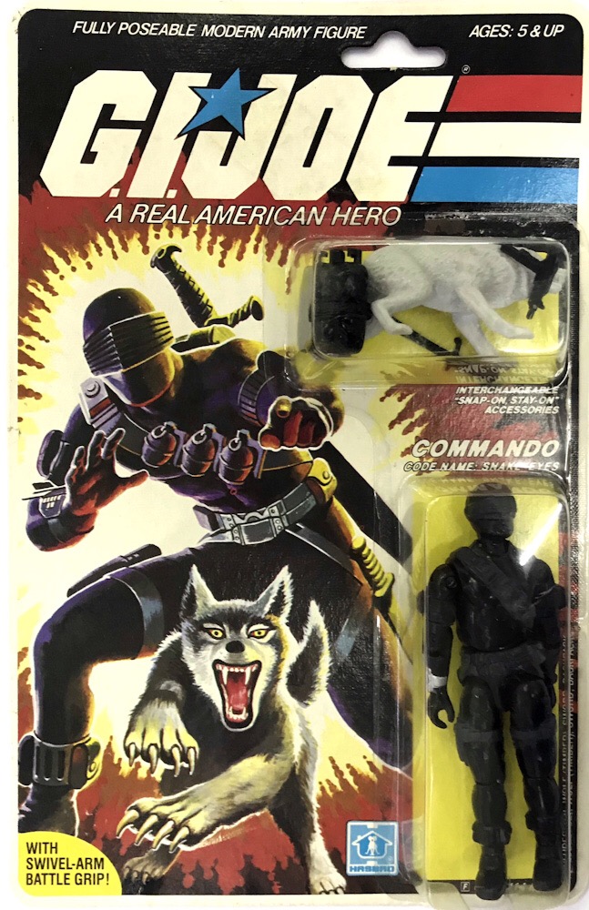 Informações Adicionais: A segunda versão de Snake-Eyes fez tanto sucesso quanto a original e introduziu em sua ficha a proficiência em ninjitsu que o uniu a seu companheiro de clã, Storm Shadow. Ela acompanhava seu lobo Timber, que havia aparecido em O Mecanismo MASS. Essa versão também marca o início da tendência no G.I. Joe em que um personagem é repensado inteiramente do zero, sem aproveitar peças da versão anterior.