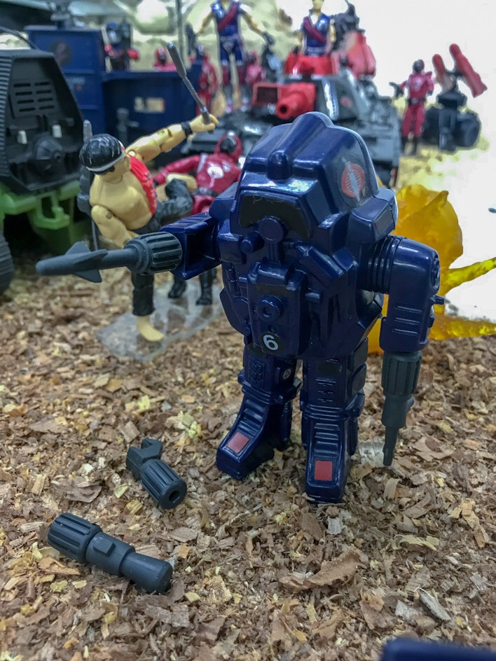 Informações Adicionais: Apesar de funcionar como uma armadura (que também tem sensores poderosos capazes de fazer lavagem cerebral em joes cativos), era comum o S.N.A.K.E. aparecer no desenho agindo como um robô independente.