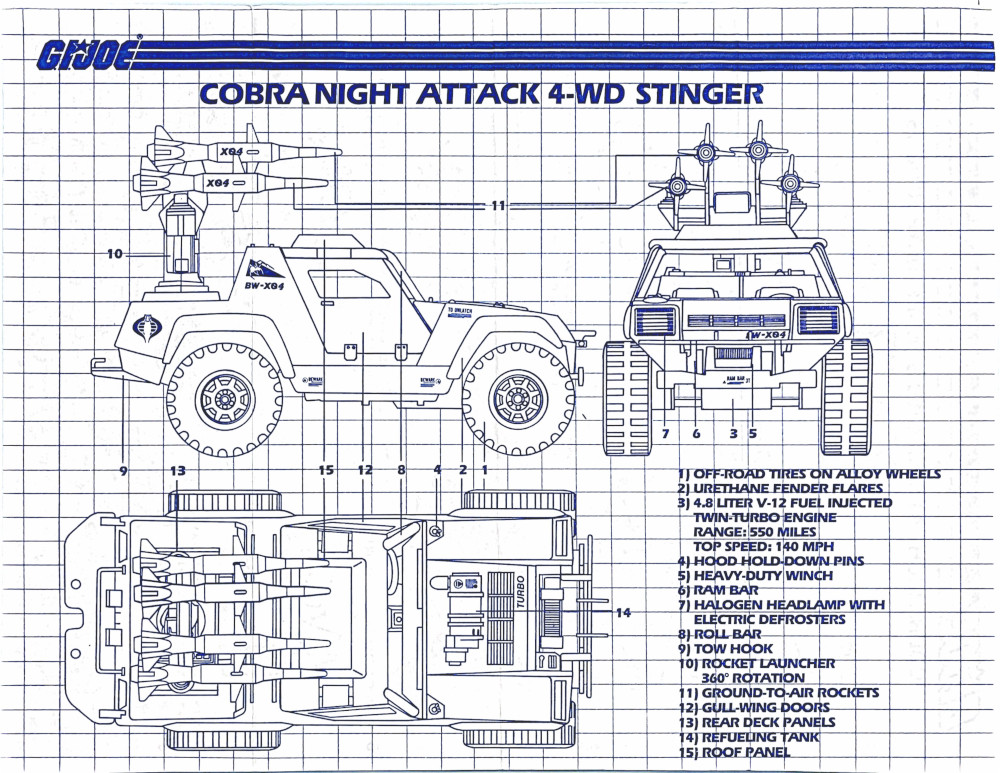 Informações Adicionais: O Stinger usava a base dos jipes Vamp, e diferenças mais notáveis observadas são a cor preta e os mísseis grandes.