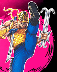 Um ex-discípulo do mestre espadachim do clã de STORM SHADOW, T’JBANG forjou e afiou sua própria espada pessoal, precisamente balanceada para sua técnica ultra-secreta, conhecida apenas como “Coice Silencioso”. T’Jbang desenvolveu essa forma sinistra golpeando morcegos voadores nas cavernas profundas em uma cordilheira remota. Ninguém que já o viu usá-la jamais viveu para falar sobre ela! T’Jbang fez um voto de silêncio por motivo conhecido apenas por seu primo de segundo grau Storm Shadow. Quando ele não está ocupado em meditação profunda, T’Jbang avança para o combate enquanto pilota os G.I. Joe Battle Copters.