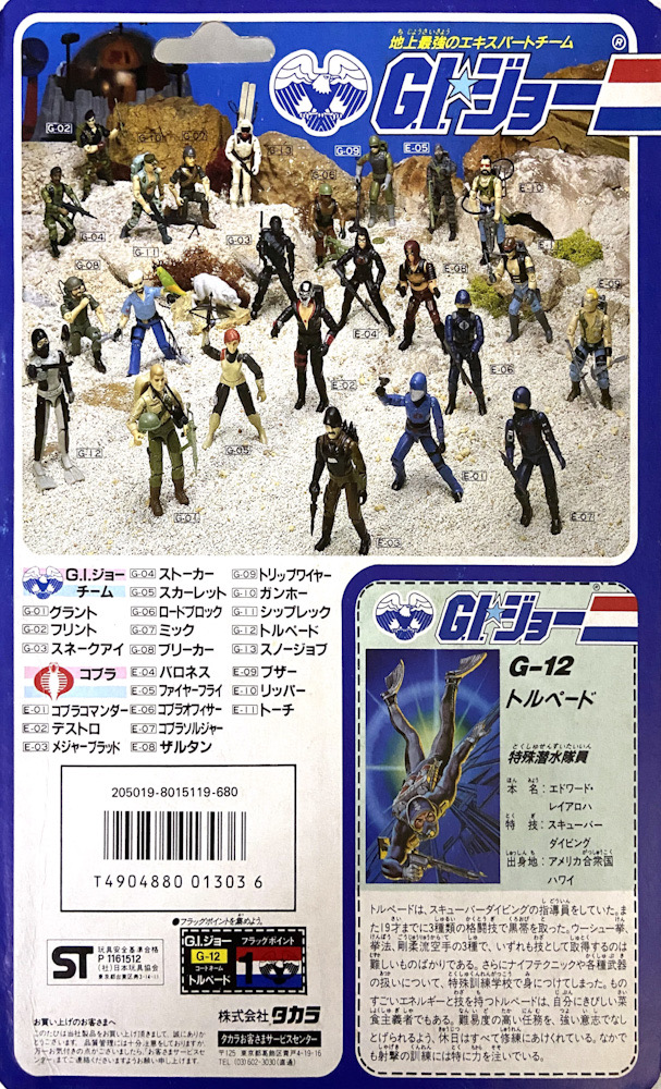 Torpedo era instrutor de mergulho com escafandro. Aos 19 anos, já havia conquistado faixas pretas em três artes marciais diferentes: Wushu, Ninjutsu e Goju-Ryu Karatê — todas de altíssimo nível de dificuldade. Também aprendeu técnicas de combate com facas e o uso de diversas armas enquanto frequentava a escola de treinamento especial. Detentor de uma energia e habilidade excepcionais, Torpedo é vegetariano por convicção e encara até mesmo as missões mais perigosas com firme determinação. Mesmo em seus dias de folga, ele passa o tempo se dedicando ao treinamento. Ele é especialmente focado em melhorar suas habilidades de tiro.