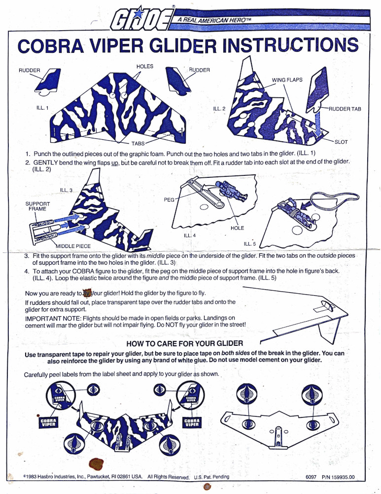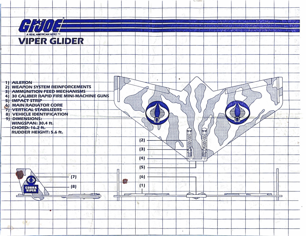 Informações Adicionais: A Viper era feita com um material leve chamado depron, que permite a ela planar um pouco, mas também é muito frágil. Não confundir com o boneco homônimo Viper.