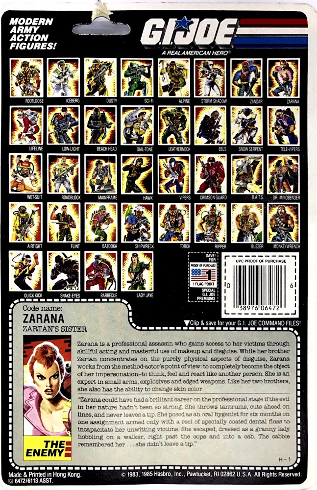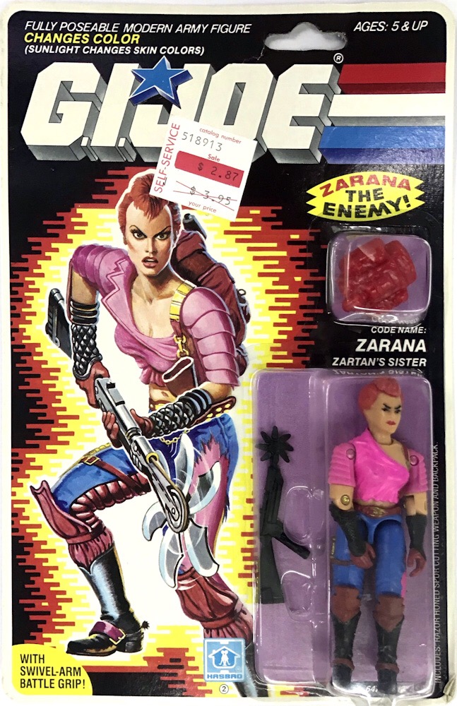 Informações Adicionais: Nesta versão, a Zarana é uma interesseira sem nenhuma personalidade, e só serve de recurso de roteiro para fornecer motivação para a Baronesa ajudar o Comandante Cobra.
