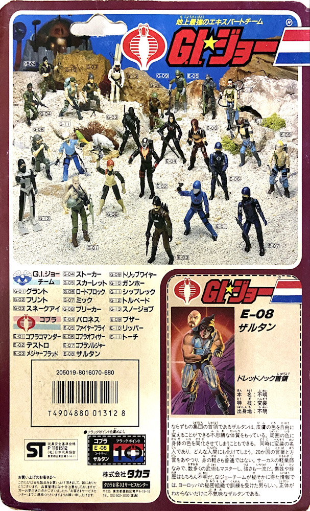 Zartan é o líder do grupo de mercenários Dreadnoks. Possui um corpo com propriedades misteriosas que lhe permitem mudar a cor da pele à vontade — adaptando-se aos tons do ambiente ao seu redor. É mestre em disfarces e pode se transformar em qualquer pessoa, imitando aparência, voz e até comportamento com perfeição. Zartan fala mais de 20 idiomas e tem uma agilidade sobre-humana, resultado de anos como acrobata de circo. Além disso, é um especialista em várias artes marciais e no uso de diversas armas. Seu passado e identidade são totalmente desconhecidos, mas de acordo com informações obtidas secretamente pela equipe G.I. Joe, ele teria sido treinado por uma organização secreta europeia. O que se sabe é que Zartan é extremamente perigoso e age nas sombras.