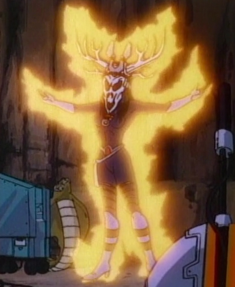 Usando a máscara de ritual que a Baronesa havia utilizado para reverter a transformação do Comandante, este transforma simpáticos macaquinhos em monstros que expulsam a equipe Joe, deixando o ex-líder Cobra de posse do Dragonfire.